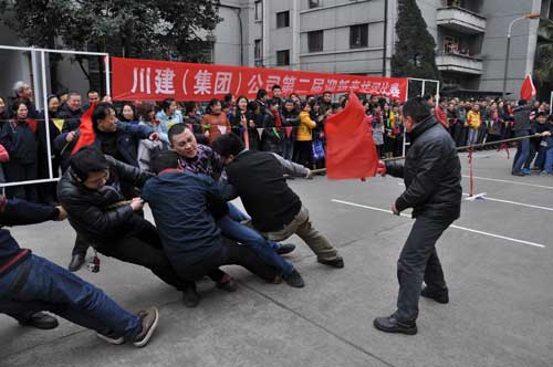 2015年1月,川建(集團)開展“迎春拔河比賽”活動,活動主旨為豐富員工的文化生活,增強員工的體育鍛煉意識,提高團隊合作精神,進一步增強企業(yè)凝聚力。