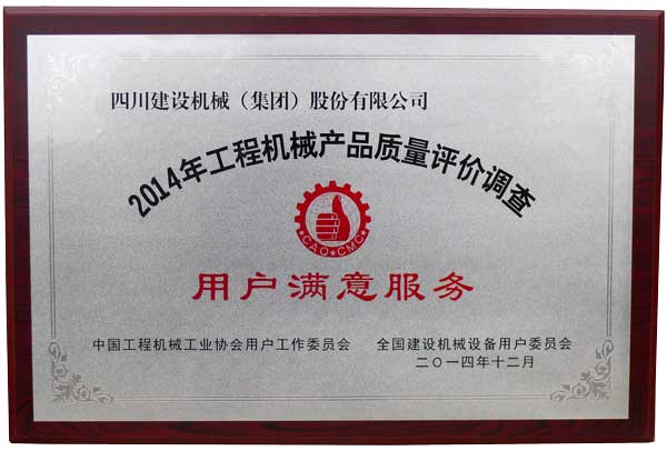 2014年全國工程機械產品質量評價調查,四川建設機械(集團)股份有限公司因產品和服務,被中國工程機械工業(yè)協會用戶工作委員會、全國建設機械設備用戶委員會評為“全國塔機用戶滿意十強”、”用戶滿意服務”企業(yè);公司生產的C5013、C5510、C5513、C6010、C6013、C7030塔式起重機以及SC200/200W施工升降機被評為“全國用戶滿意產品”。1989年至今川建已連續(xù)十次獲得全國用戶滿意獎,在行業(yè)內取得了較高榮譽。